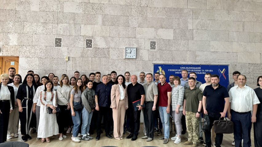 02 грудня 2025 року у сесійній залі Хмельницької міської ради відбувся ІІ звітно-практичний круглий стіл «Школа місцевого самоврядування 2.0: успіхи та перспективи», у ході якого були підведені підсумки спільного проєкту Хмельницької міської ради та Хмельницького університету управління та права імені Леоніда Юзькова «Школа місцевого самоврядування 2.0». З Вітальним словом до учасників круглого столу звернулися Хмельницький міський голова Олександр СИМЧИШИН та ректор Хмельницького університету управління та права імені Леоніда Юзькова професор Олег ОМЕЛЬЧУК.