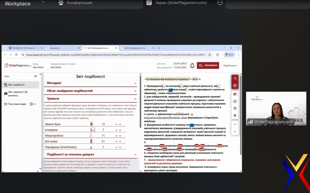 19 вересня 2025 року відбулась відкрита гостьова лекція Дарії Іванової «Межі оригінальності: інтерпретація звітів StrikePlagiarism.com в епоху ШІ». Захід зібрав понад півтори сотні слухачів, - здобувачів вищої освіти та науково-педагогічних працівників Хмельницького університету управління та права імені Леоніда Юзькова.
