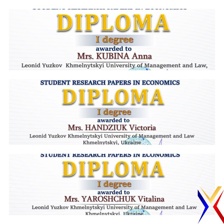 VII Міжнародний конкурс студентських науково-дослідницьких робіт з економіки – перші місця для молодих науковців Хмельницького університету управління та права імені Леоніда Юзькова!