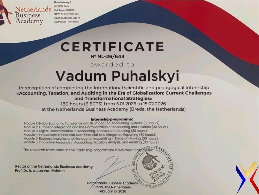 ✔️ доцент кафедри Вадим Пухальський поглибив фахові компетентності за напрямом «Облік, оподаткування та аудит в умовах глобалізаційних змін: сучасні виклики та трансформаційні стратегії».