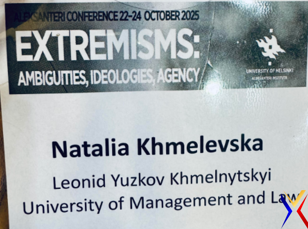 22–24 жовтня 2025 року доцентка кафедри кримінального права та процесу Наталя Хмелевська взяла участь у міжнародній науковій конференції «Extremisms: Ambiguities, Ideologies, Agency» University of Helsinki, присвяченій осмисленню сучасних викликів, пов’язаних із поширенням екстремістських ідеологій, поляризацією суспільства та трансформацією демократичних інститутів. Під час заходу науковці з різних країн обговорювали причини вразливості демократичних систем до радикальних впливів, проблематику використання риторики боротьби з екстремізмом для обмеження прав і свобод. У межах конференції Наталя Хмелевська представила доповідь на тему «Restoration and Development of the Juvenile Justice System in Post-War Ukraine»