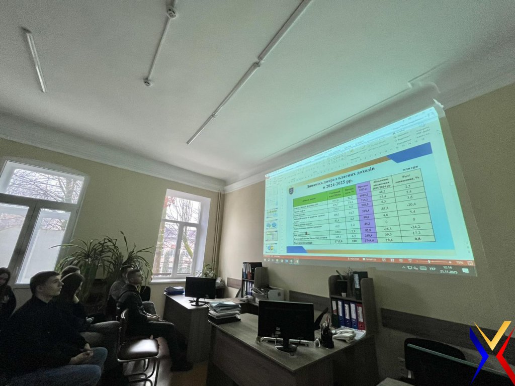 21 листопада 2025 року здобувачі Освітньої програми «Бакалавр публічного управління та адміністрування», в рамках навчальної дисципліни «Місцеве самоврядування», відвідали Управління фінансів Хмельницької міської ради. Процес формування бюджетів громад на 2026 рік зараз у активному процесі. Тому, студенти дізналися про усі етапи такого процесу. Окрему увагу приділили бюджету Хмельницької громади на 2025 рік. Пріоритети — освіта, соціальний захист і допомога Силам оборони. Обговорили цікаві і актуальні питання: як громади можуть стимулювати збільшення надходжень до бюджету та які проблеми в адмініструванні існують.