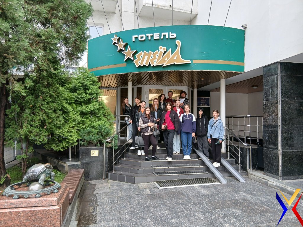 Ознайомлення здобувачів Освітньої програми «Бакалавр туризму» Хмельницького університету управління та права імені Леоніда Юзькова з особливостями готельного бізнесу є важливим для розуміння практичної значимости закладів розміщення в успішному функціонуванні туристично-рекреаційної сфери. Саме тому, першокурсники спеціяльности J3 Туризм і рекреація, в рамках Навчальної практики «Вступ до фаху», 17 вересня 2025 року відвідали готель «Енеїда». Знайомство розпочалося з вигідного географічного розташування і незмінної екзотичної охорони «Енеїди». У вестибюлі, з класичною рецепцією та вражаючою люстрою, адміністратор Тетяна ПОЛІЩУК розповіла студентам про особливості роботи, посадові обов’язки і заходи безпеки. Відтак, директор Микола ЦЕГЕЛЬНИК провів екскурсію господарськими приміщеннями і номерами різних ступенів комфортности, одночасно розповідаючи про цінову політику й техніко-технольоґічне оснащення й оновлення. Шанувальники кардіо мали задоволення відчути магію вузької сходової драбини з першого по дев’ятий поверхи і загадкових зачинених дверей на кожному етапі підйому. Завершальним професійно-пізнавальним акордом Навчальної практики «Вступ до фаху» був український документальний фільм «Антарктида» в кінотеатрі «Woodmall», до перегляду якого також доєдналися старшокурсники Освітньої програми «Бакалавр туризму».