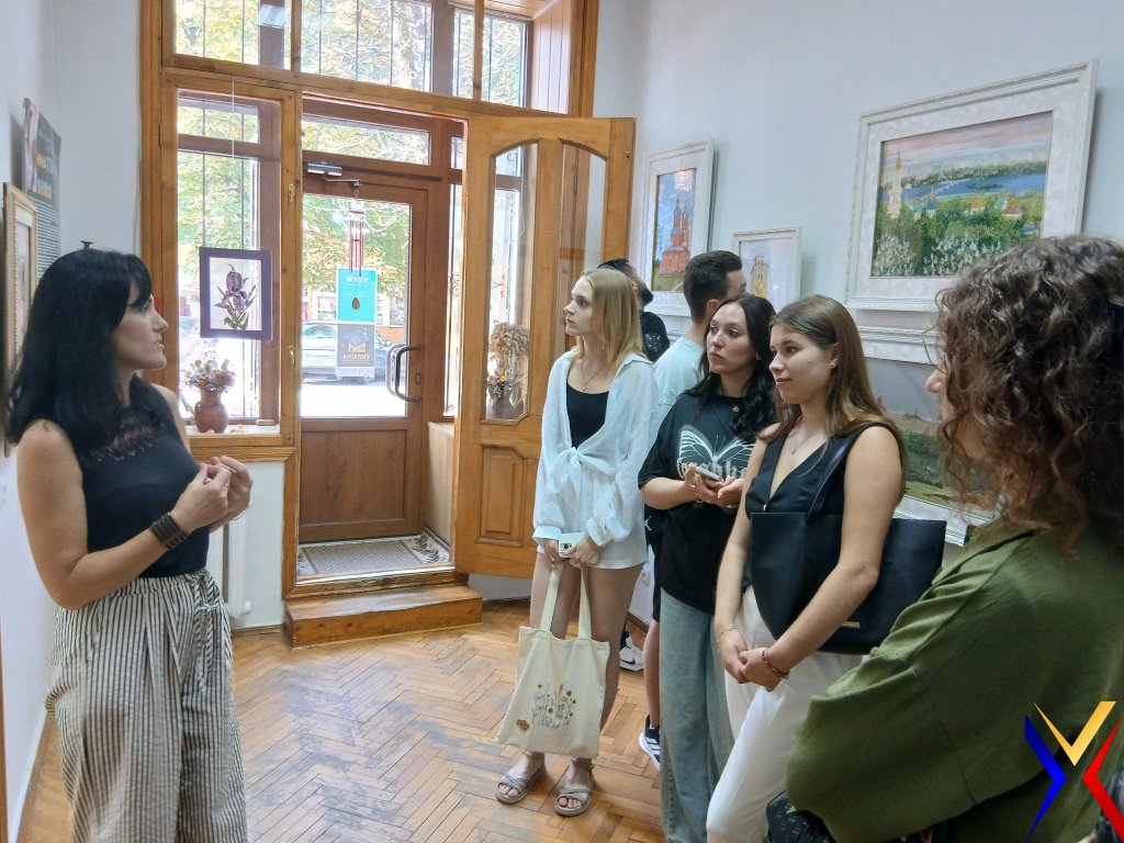 3 вересня 2025 року студенти Хмельницького університету управління та права імені Леоніда Юзькова за спеціяльністю J3 Туризм та рекреація відвідали Хмельницький обласний художній музей в рамках Навчальної практики «Вступ до фаху». Науковець музею Ірина ЧАБАНОВА розпочала знайомство з історичною будівлею та зовнішньою експозицією із символічно патріотичним спрямуванням. Екскурсія у Хмельницькому обласному художньому музеї не тільки емоційно та культурно збагатила здобувачів освітньої програми «Бакалавр туризму», але ознайомила з мистецтвом проведення екскурсій.