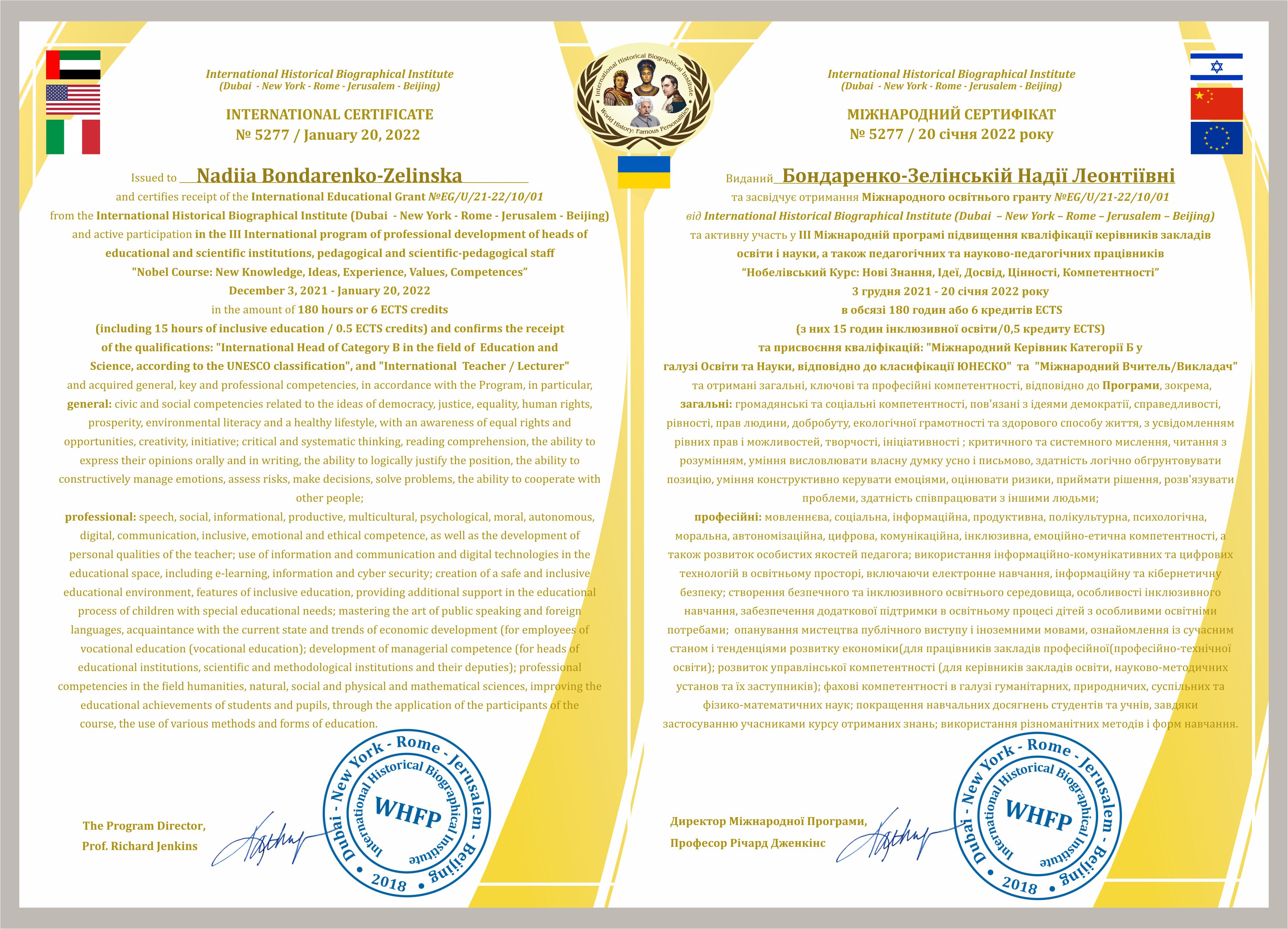 2009 – Doctor of Philosophy, Ph.D. Supplement to diploma ДК № 041956 23.03.2009
