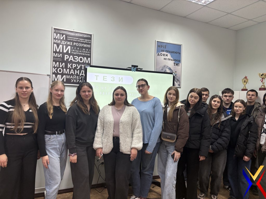19 березня 2026 року навчально-науковим департаментом Студентської ради було проведено лекцію, присвячену написанню такому виду наукових робіт як тези. Під час заходу учасники дізналися, що таке тези, яке їх значення в науковій діяльності, а також ознайомилися з основними вимогами до їх підготовки та оформлення - від структури до логіки викладу матеріалу. У межах лекції було розглянуто такі ключові питання: - структура тез та їх основні елементи; - пошук наукових джерел та інформації; - принципи академічної доброчесності; - поняття плагіату та способи його уникнення; - можливості участі у наукових конференціях; - різниця між платними та безкоштовними конференціями. Також поділилися корисними ресурсами для пошуку конференцій та наукових матеріалів, що стане у нагоді студентам у їхній подальшій науковій діяльності. Захід став чудовою можливістю отримати як базові знання, так і практичні рекомендації для тих, хто лише розпочинає свій шлях у науці або прагне вдосконалити власні навички. Дякуємо всім учасникам за активну участь та зацікавленість.
